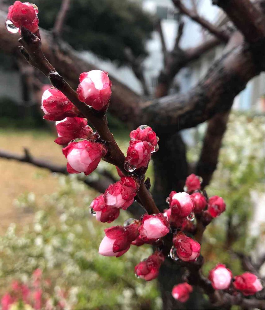蕾が雨に濡れて、さらに可愛かったので✨🎶