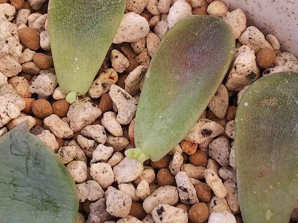 先月葉挿しした朧月から、新芽が出ましたー🌼*・
