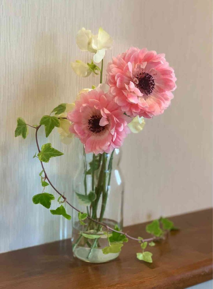 ここのアネモネ、スイートピーなど可愛いですね💐