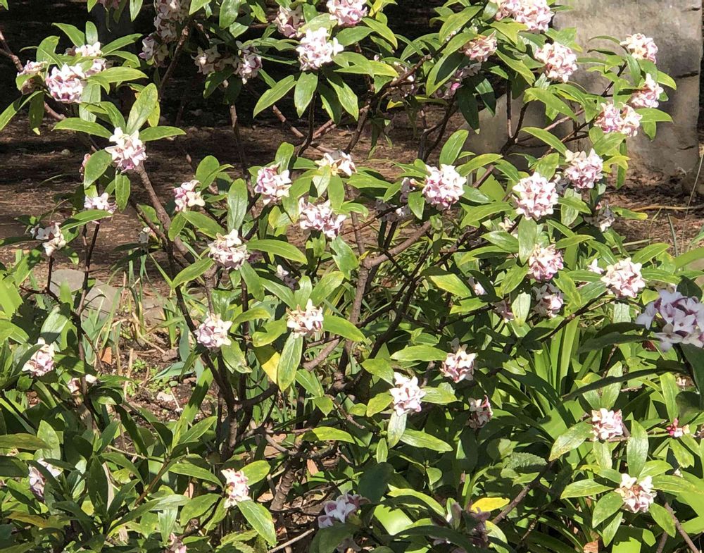 4月のような日差しの中で近くの公園を散歩していたら、つい香りに誘われてみると、沈丁花が、私はここに居ますよと言わんばかりに咲き誇っていました!
