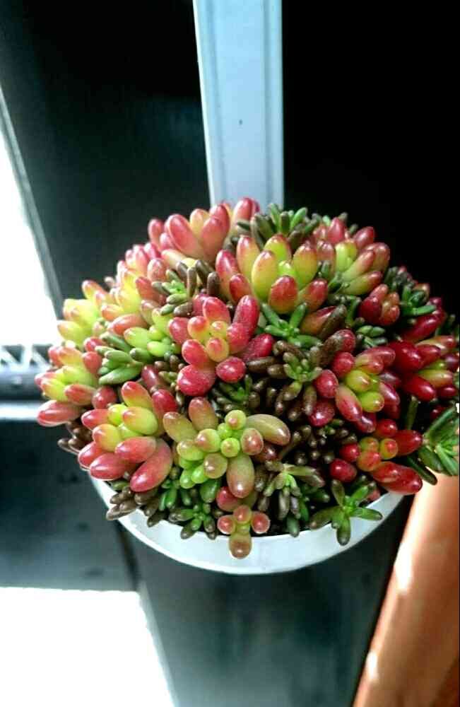お気に入りの園芸店で見た虹の玉とセダムアルブムヒレブランティの寄せ植えを、