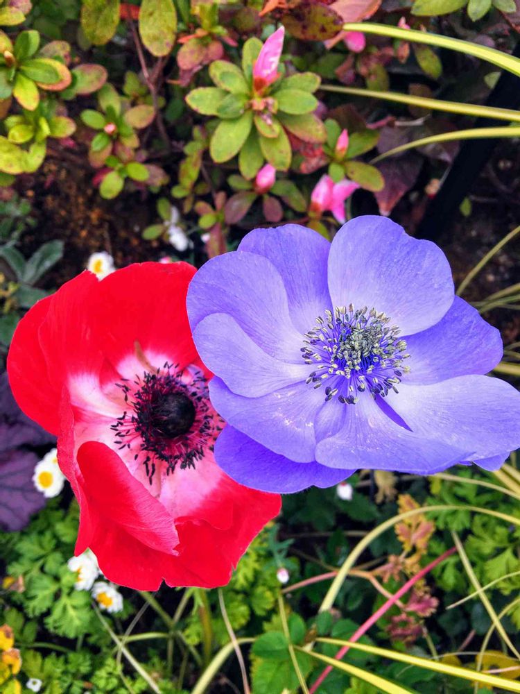 ピンクと青色の2色のアネモネ🌼🌸