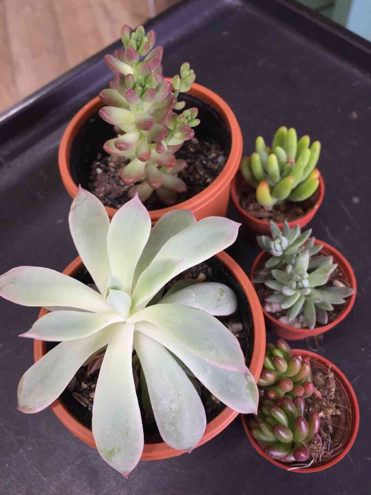本日のお迎え。ホワイトストーンクロップ、プラッドブリアナ、八千代、カメレオン、虹の玉🌵来月は多肉遠足に行くのでしばらくはホームセンターには近づかない٩( 'ω' )و