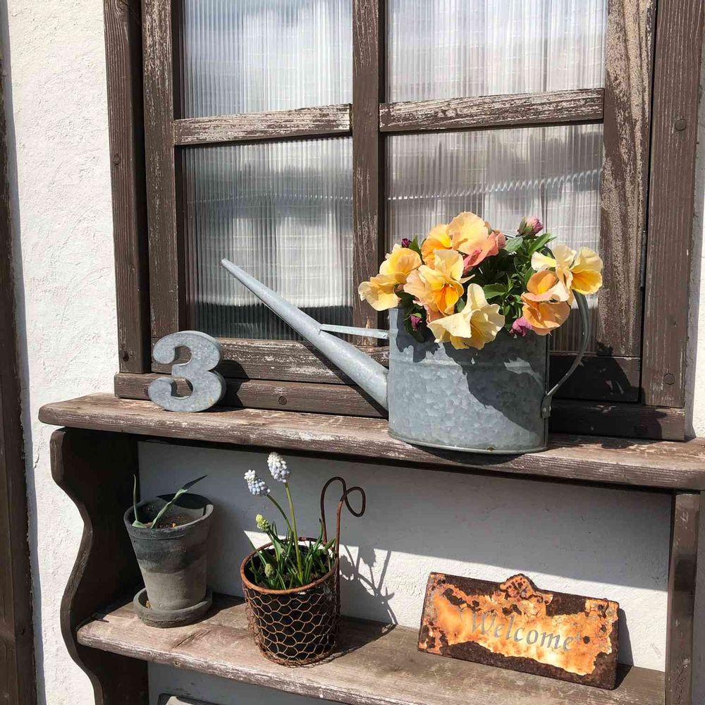 ビオラをカットしてジョウロにいけるのいいですね。とても可愛くて絵になりますね。