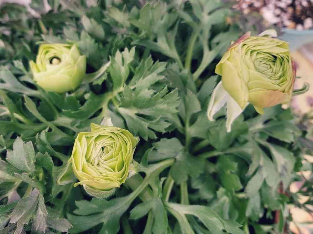 昨日のラナンキュラスの大きいお花を✂️したら2つ蕾が👀と思ったのですが葉っぱの中にもうひとつ隠れていました😃