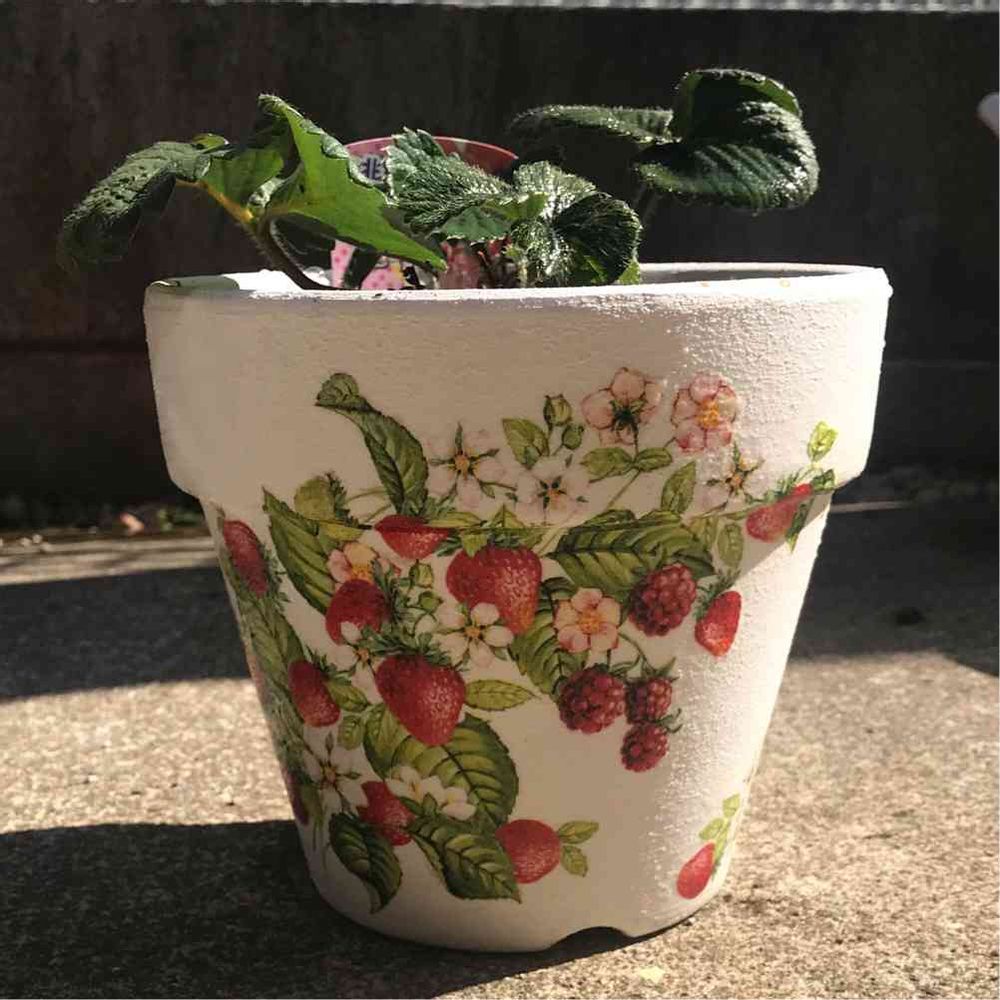 とても素敵な植木鉢ですね🐱💕本物のイチゴみたいに立体的に浮き出て見えます🍓✨