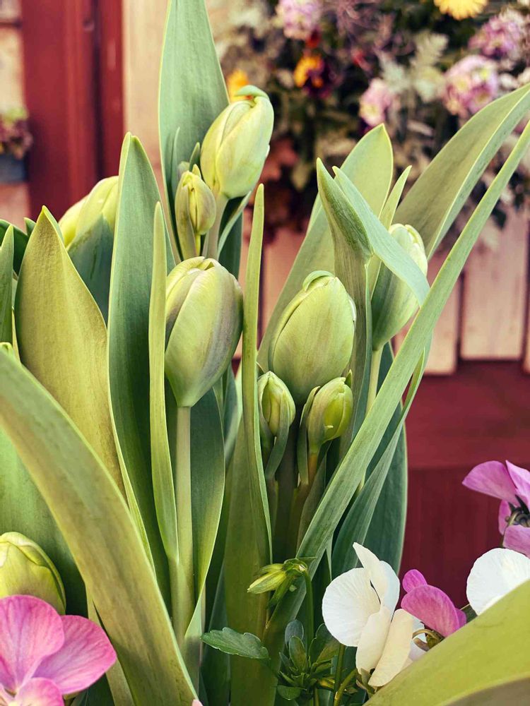 冷蔵処理済みのチューリップは外は冷蔵庫より暖かいから春が近いと勘違いして咲くようです。
