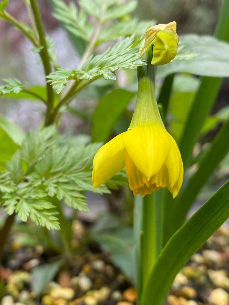 黄色いミニ水仙 そんなにひたむきにならなくても…。お顔を見たくて覗こうと思ったけれど。ひっそりが好きなのかな。