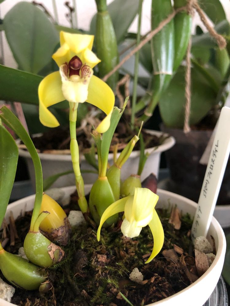 お褒めいただきありがとうございます😊蘭の花が咲きましたよ〜香りもあって◎ニジュウマルです。寒さにも比較的強く放置していても花をつけてくれる優等生です。父のところから強奪してきた甲斐がありました♬