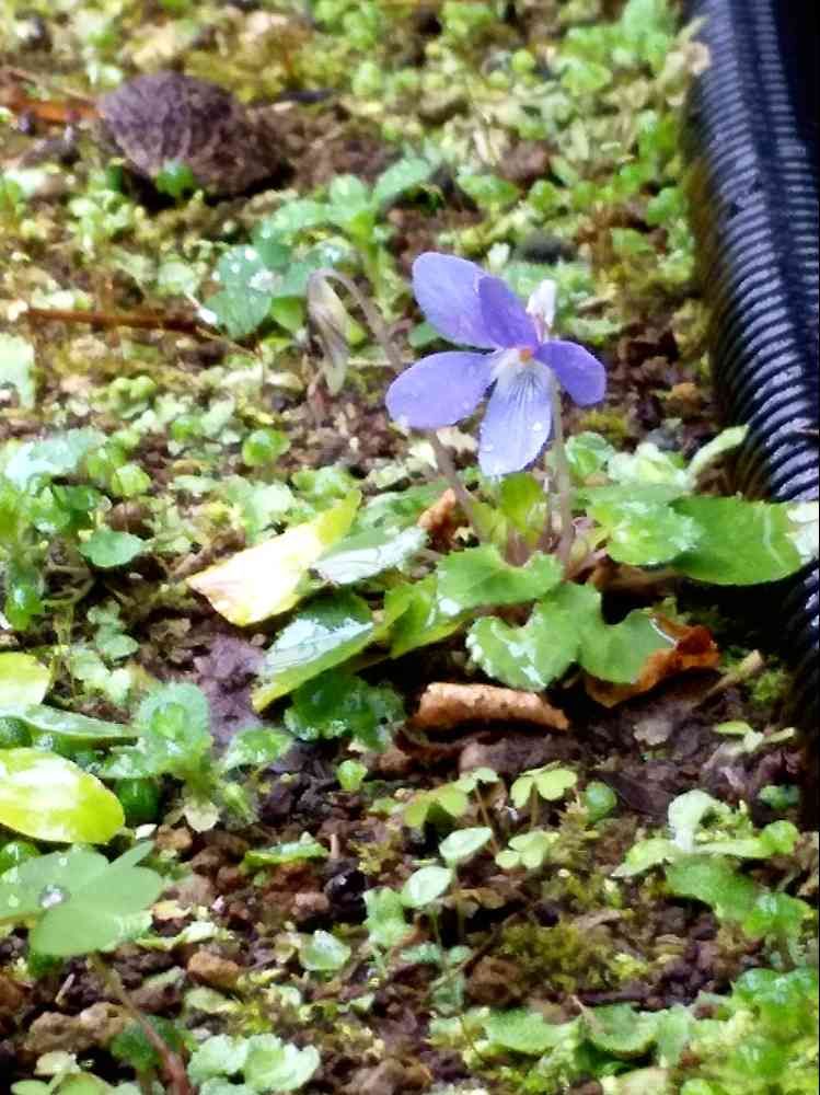 雨粒が小さなすみれを揺らします。