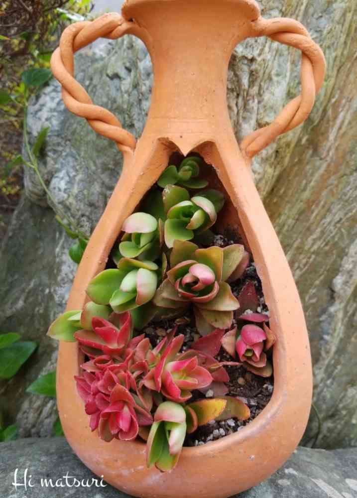 葉挿しした火祭とグリーン綺麗で、このテラコッタに凄くあってて素敵ね〜💗💗💗