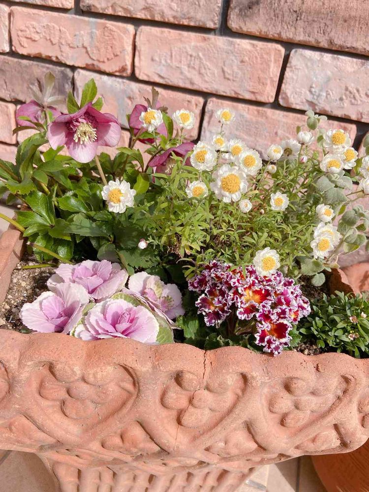ちょっと変わったフリンジ咲きのジュリアンをお迎えしたので寄せ植えに入れてみました🎵💕