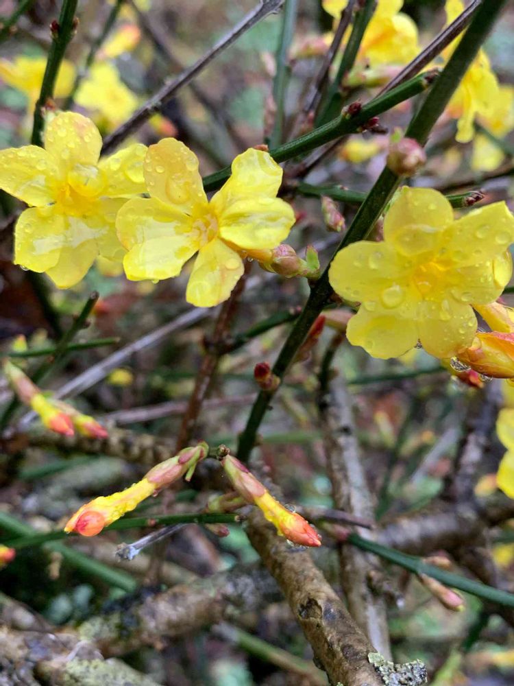 調べたら黄色い花が梅に似ていることと咲く時期が同じことから、この名前になったが、本来、梅とは関係なく、ジャスミンの仲間。(香りはない)だ、そうです☺️