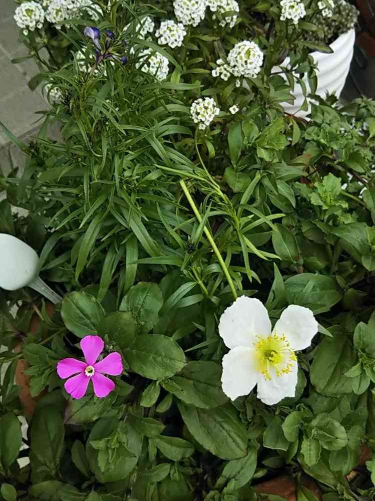 9月に蒔いた紫竹ガーデンから頂いた種からポピーが咲きました。紫色の花も開いたけど…なんだろう😩ネメシアのような…