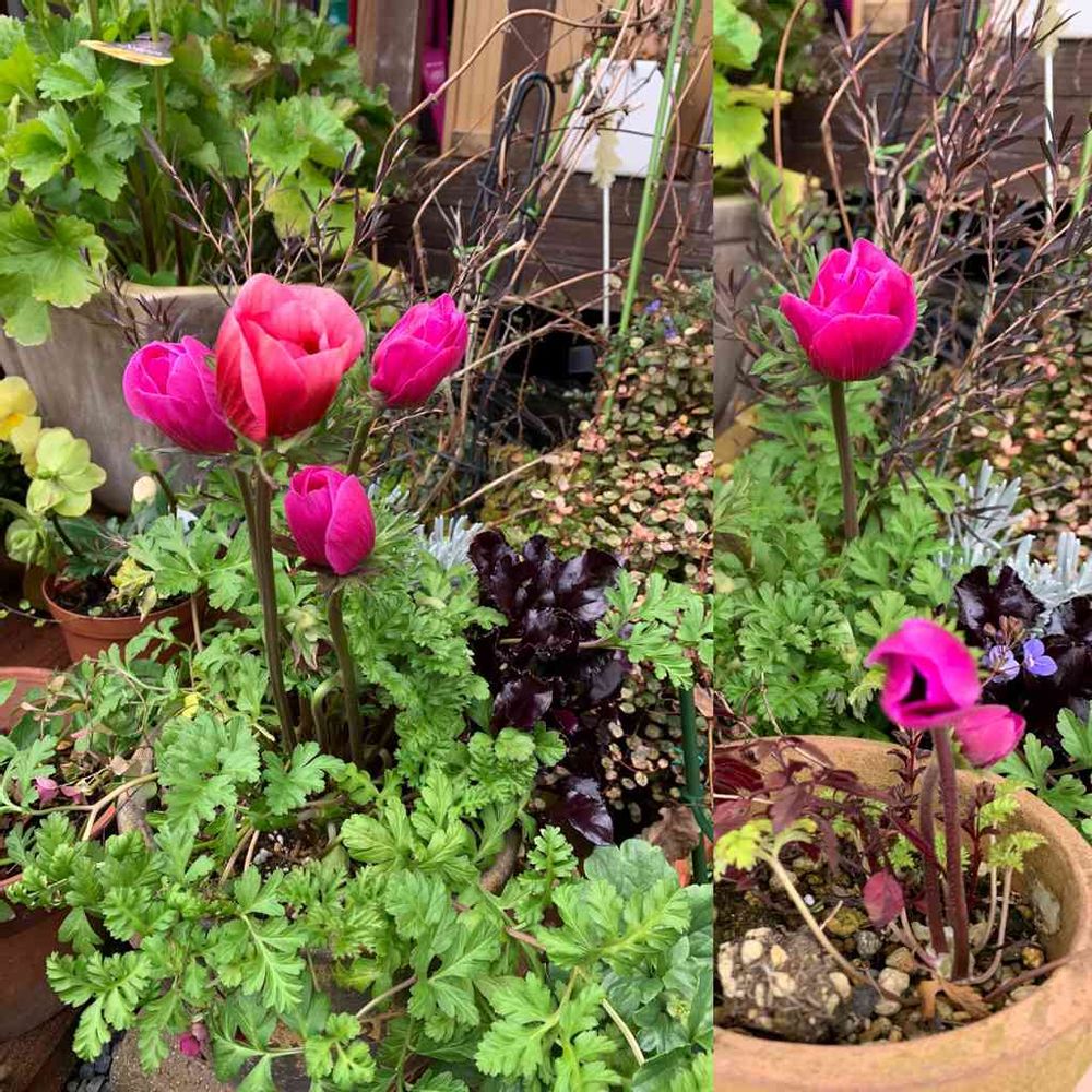 右手のアネモネは数年前に小指の先程の球根を植えっぱなしにしている🌸