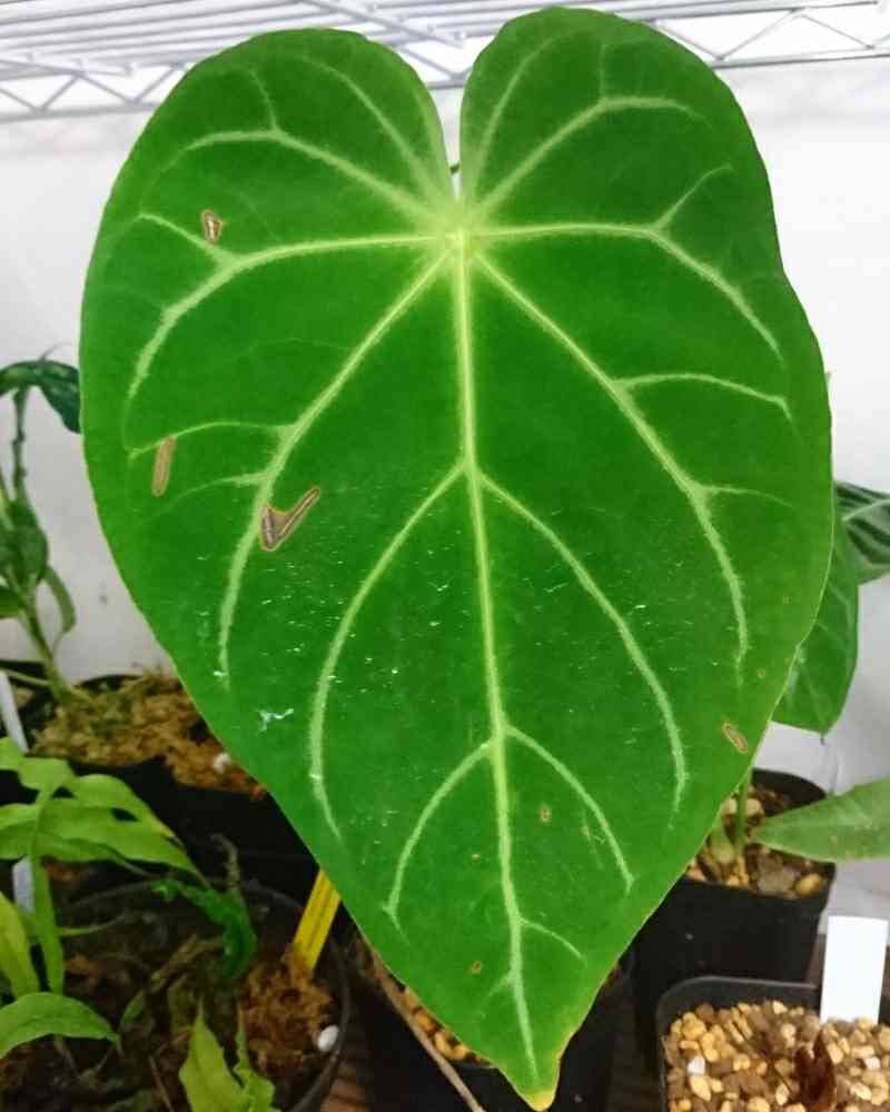 一般的なアンスリウムは花がメインなのに対しこちらは葉の形や模様の観賞がメインです