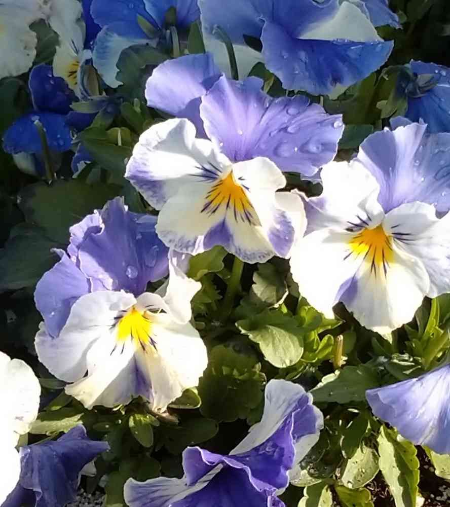 パンジーさん朝日浴びて眩しいのか目細めてる ほほえましいお姿