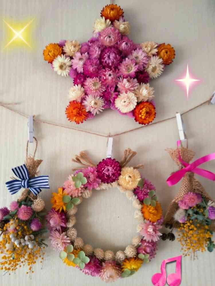 ベースにグルーガンでコツコツと付けるだけですが、貝細工、千日紅が綺麗な色なので可愛いく仕上がりました💞