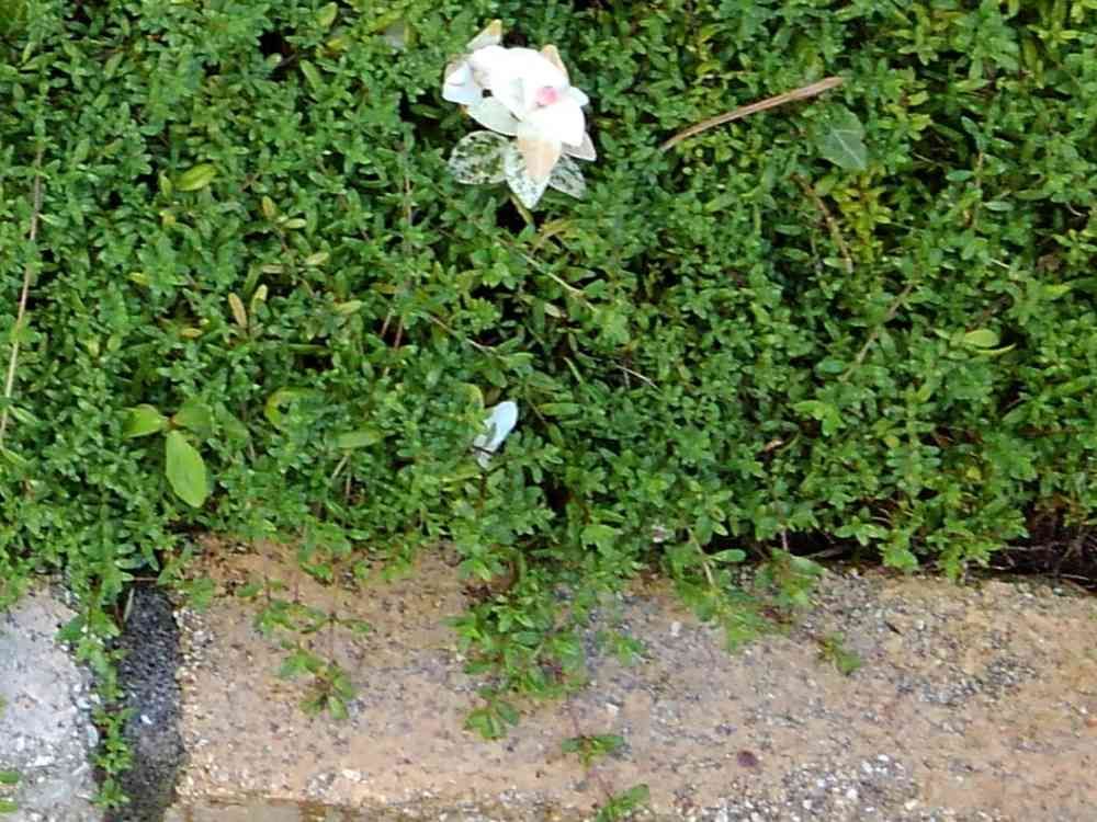 ハツユキカズラと一緒に植えてある、この緑色の小さい葉の植物は、何と言う名前でしょうか。
