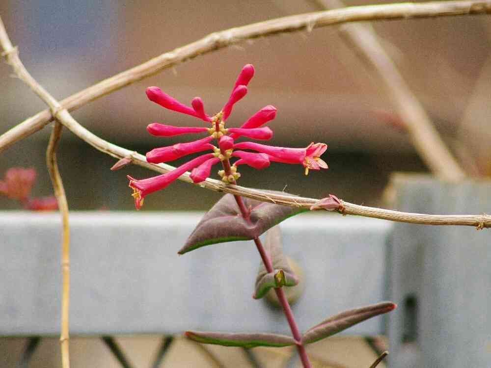 ハニーサックル?スイカズラ?同じ仲間でしょうか?スイカズラは、白かったような?良い香り!