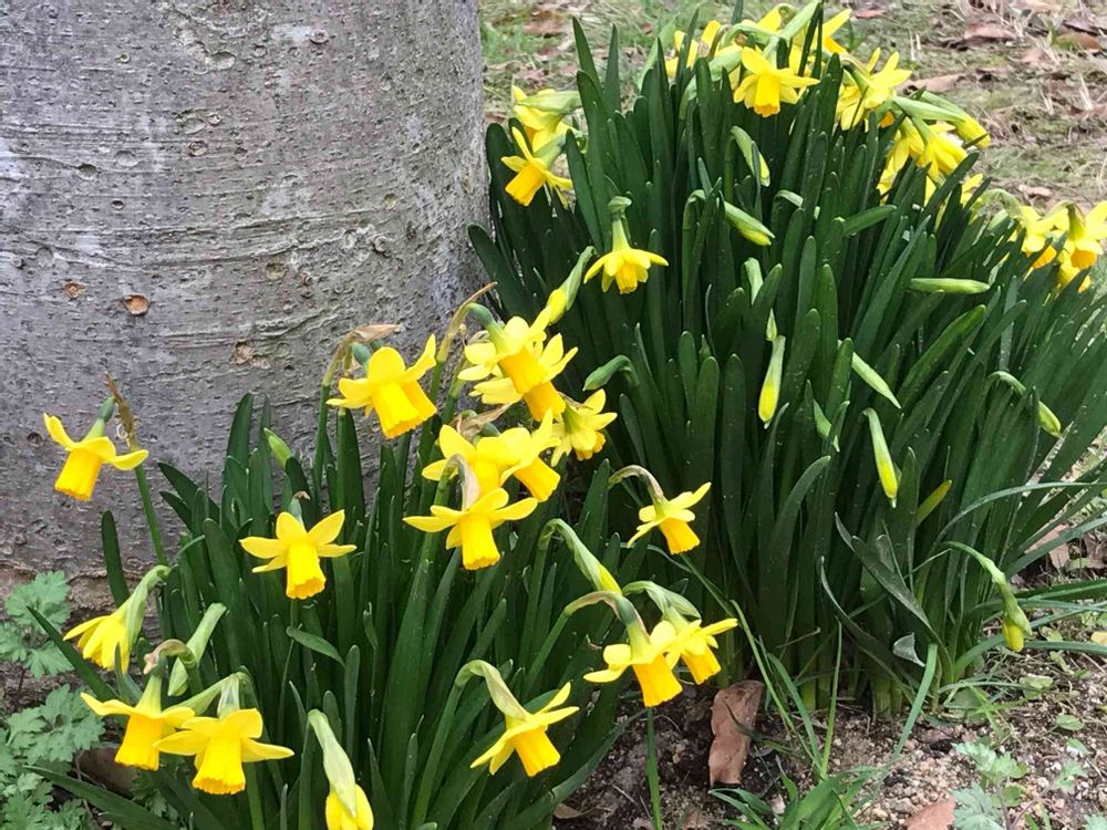 公園の斜面の木々の根もとに水仙が植えられていて、満開直前のいちばんいい時です!