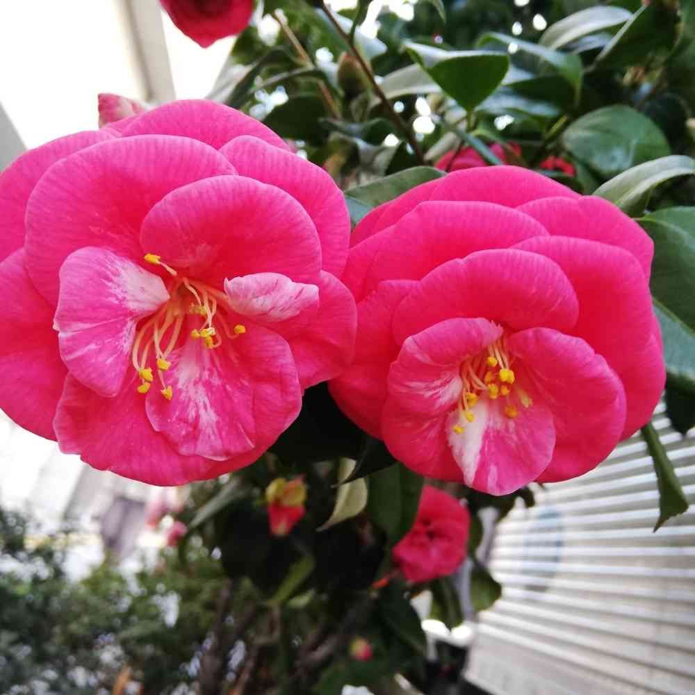 素敵な椿デスネ!!(*˘︶˘*).。.:*♡❧❤💚❤…💖🐾✨🐾✨双子のようによく似たお顔で!!咲いてるねぇ…〜…みたことがない珍しい椿の花!!✨🌺🍀