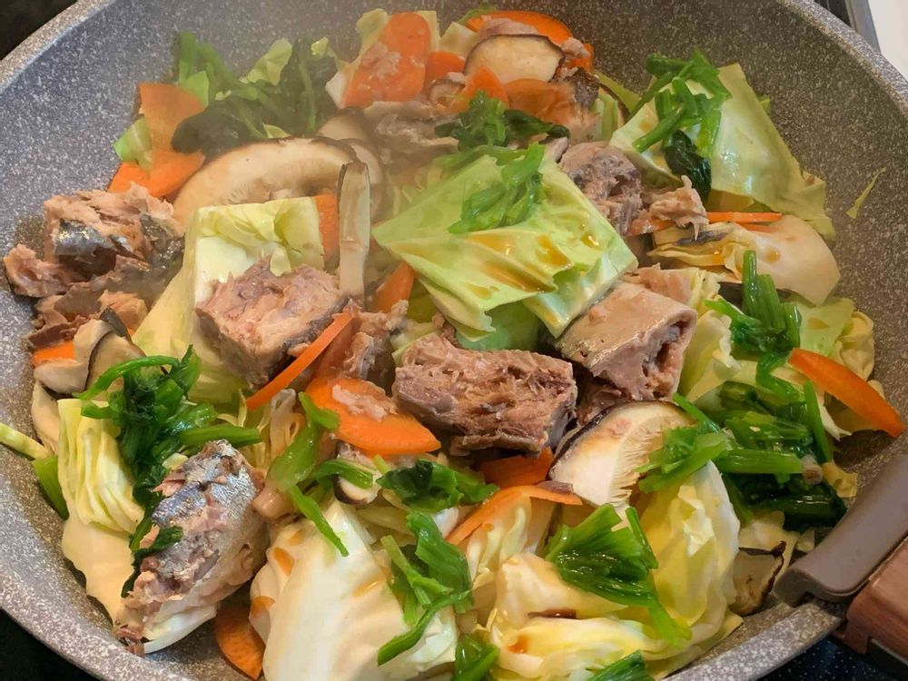 昨夜の夕ご飯に鯖缶キャベツを作り美味しく頂きました😋😋