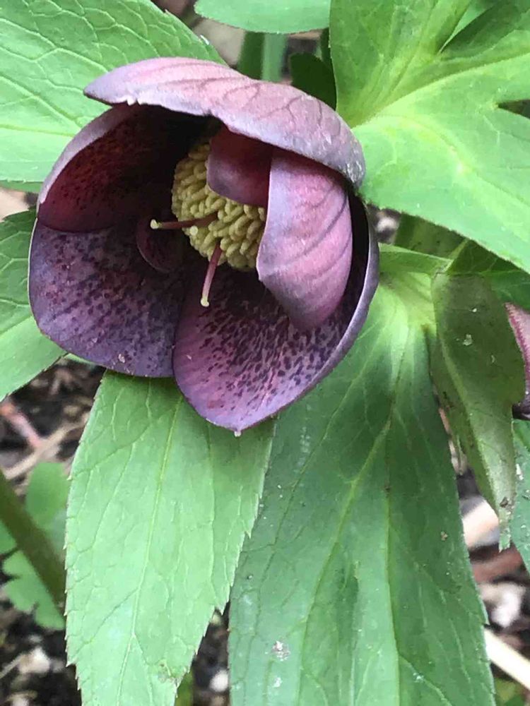 小さな庭,クリスマスローズ セミダブル 小豆 ブロッチ 実生,地植えの投稿画像