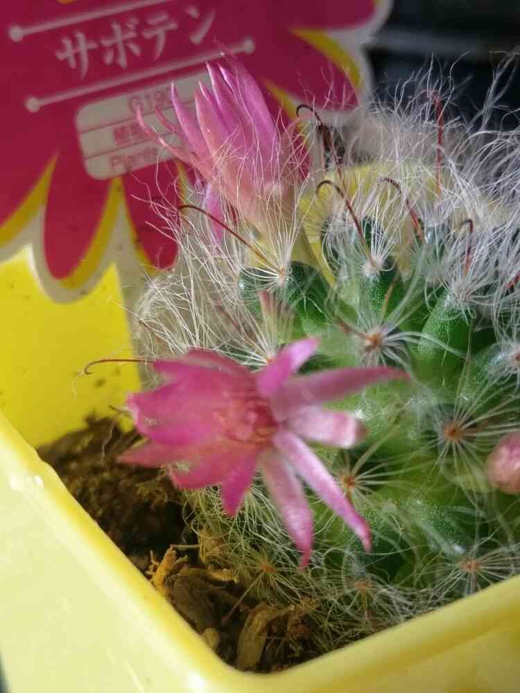 100均で、ピンクの花が着いたちっちゃなサボテンを買いました。
