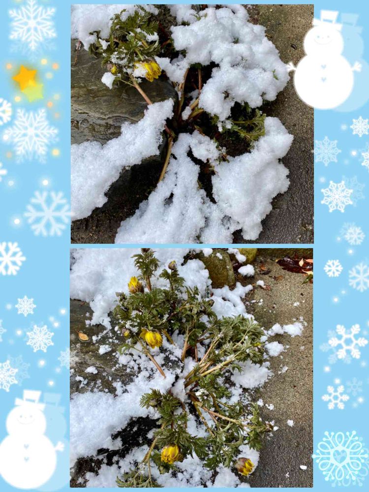 ⛄️ほろっても〜直ぐには起き上がれない…背丈が伸びた🌼福寿草🌼