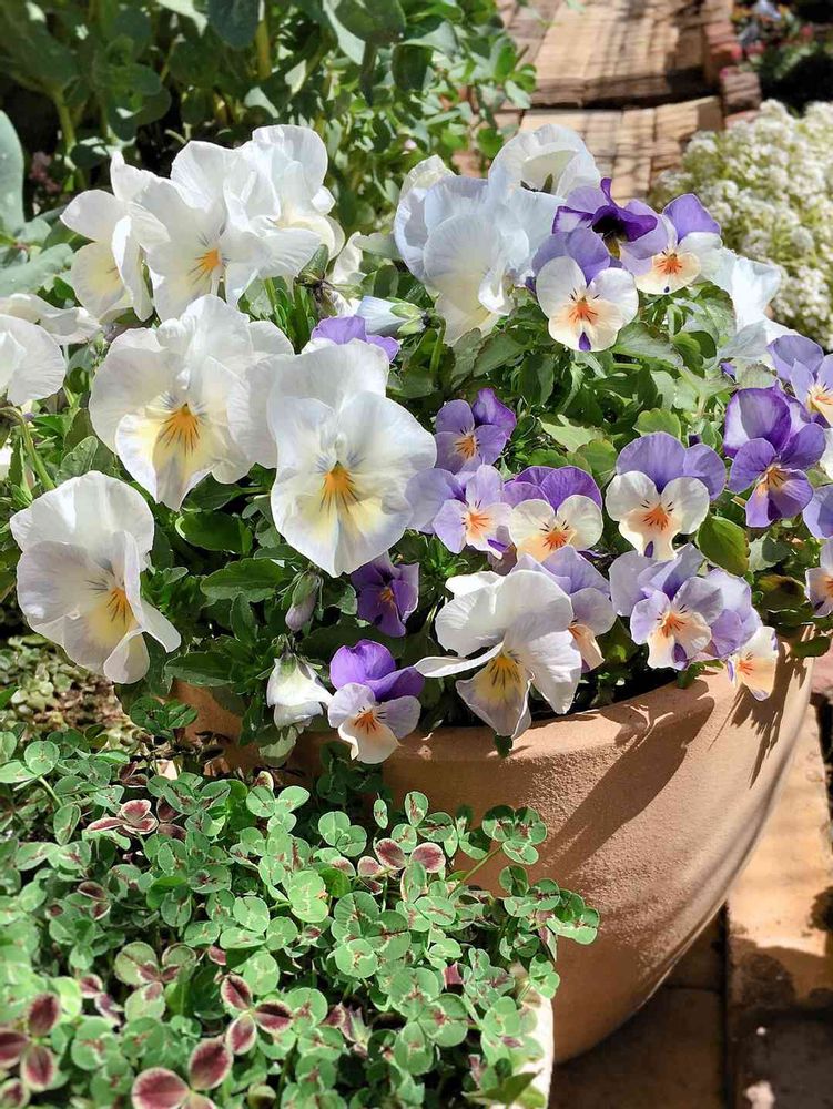 八重咲きオリエンタルリリーが、咲き出すまでの帽子として選ばれた100円未満のパンジーとビオラ。思った以上の働きで、思わずパシャリ(昭和な擬音)📸←本当はボロボロのスマホで撮影💧
