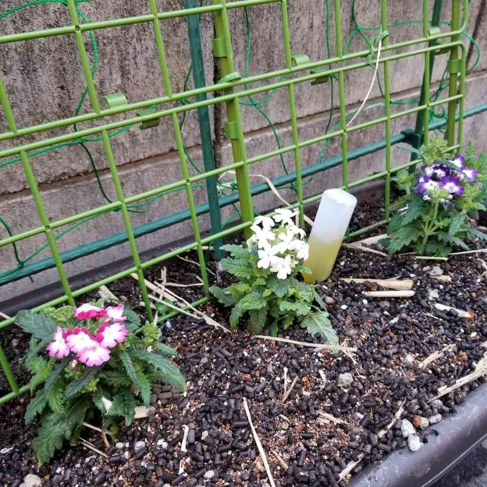 バーベナちゃん。アサガオ植えてた所に並べてみた。
