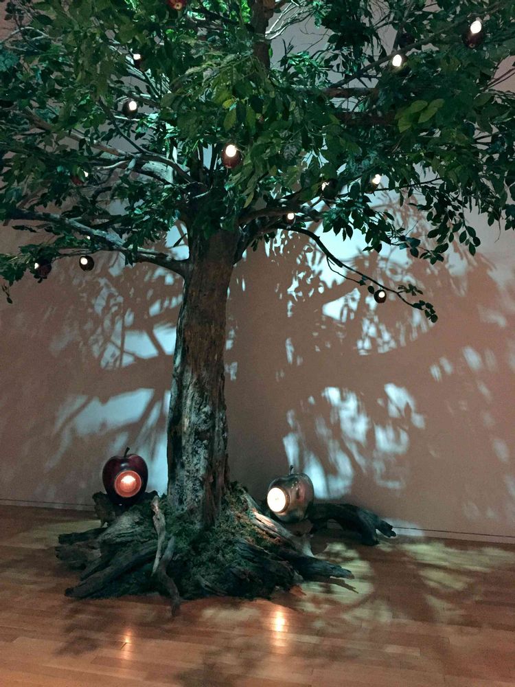 これはリンゴの木?光る実がなる不思議な木。ファッションブランド・UNDERCOVERの展覧会会場で見つけたシンボルツリー!展覧会詳細はブログで!http://greenwhitesun.jugem.jp