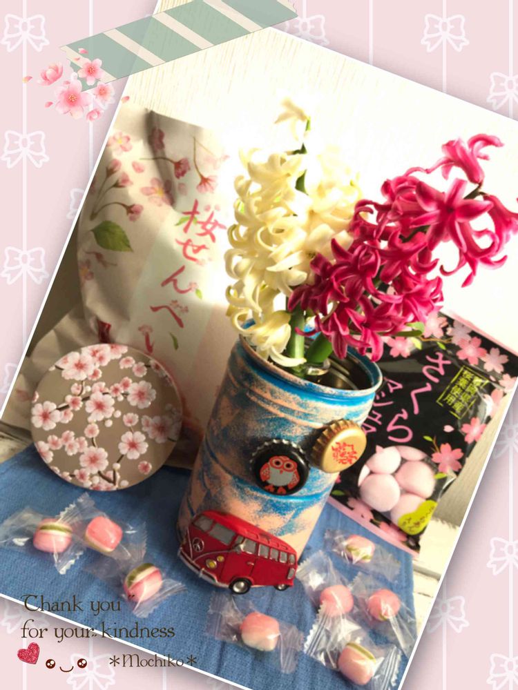 今年はのんびりとお花見にも行けないかもしれないので、家の中でもお花見気分になれるリメ缶が届いて、嬉しいです🌸