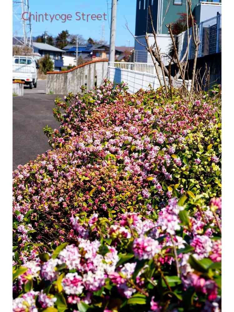 ちんちん電車遊歩道の沈丁花、今が満開…。🌺🌳🚶👻