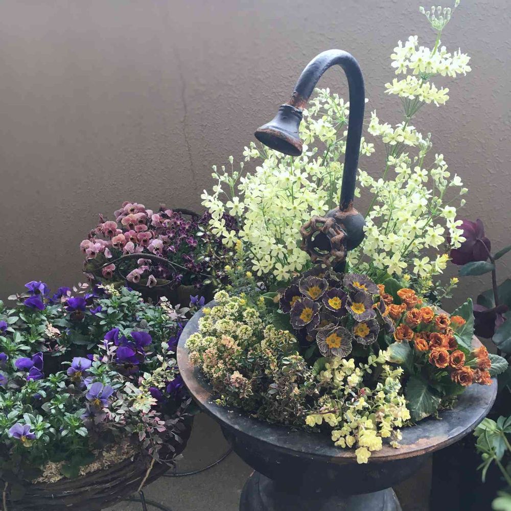 ウインティーのライムグリーンを使って作った寄せ植えがようやく咲き揃ってきましたので、ご紹介できて嬉しいです💞