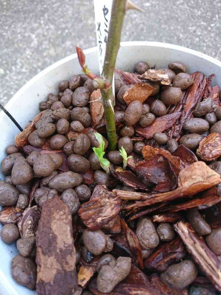 昨年の6月に挿し木した薔薇の根元にシュート?