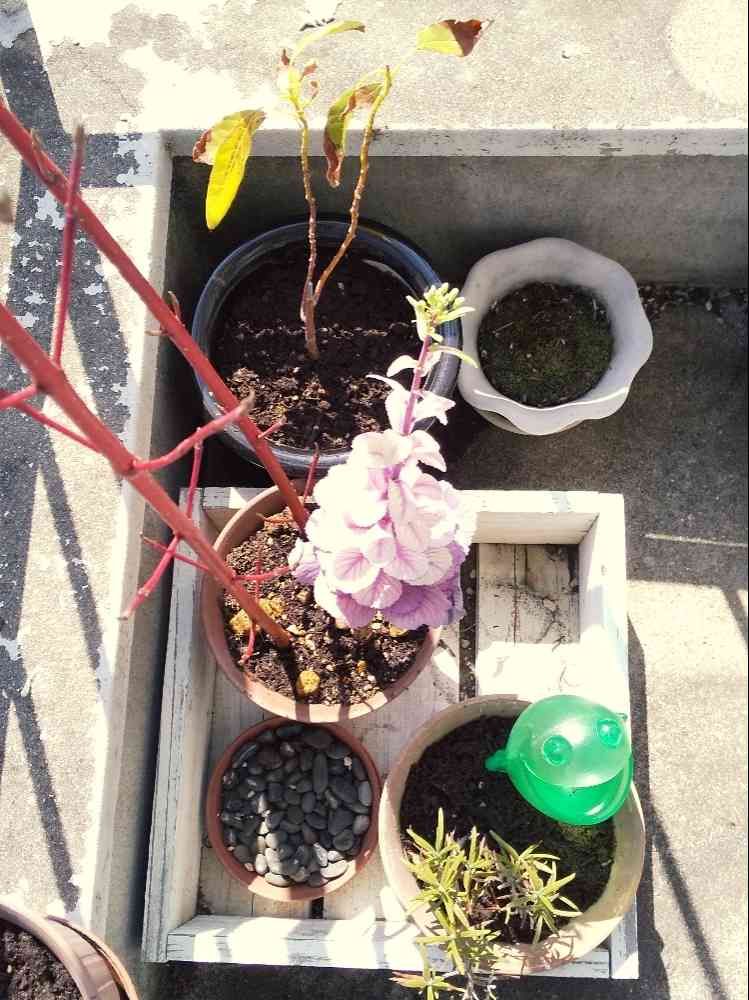 珊瑚水木と葉牡丹は、正月の切り花で買ったものをずっと花瓶に挿し続けていたら、根っ子が生えたので植えてみました。