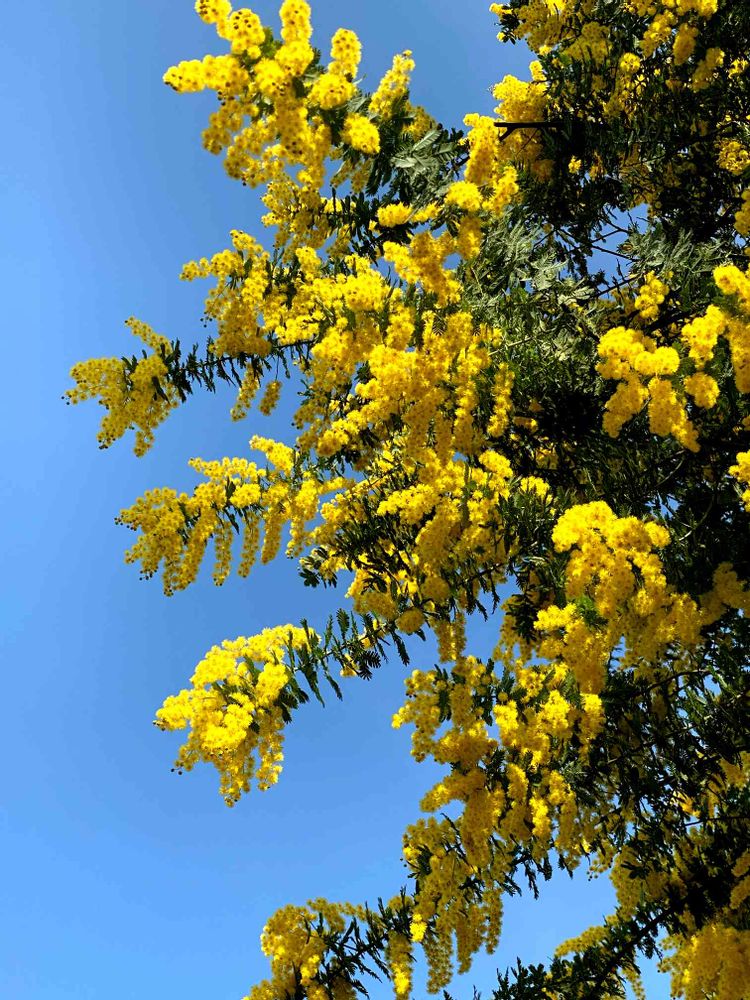 とってもキレイな青空☀️に、ミモザさんも元気いっぱい黄色映える〜✨✨。