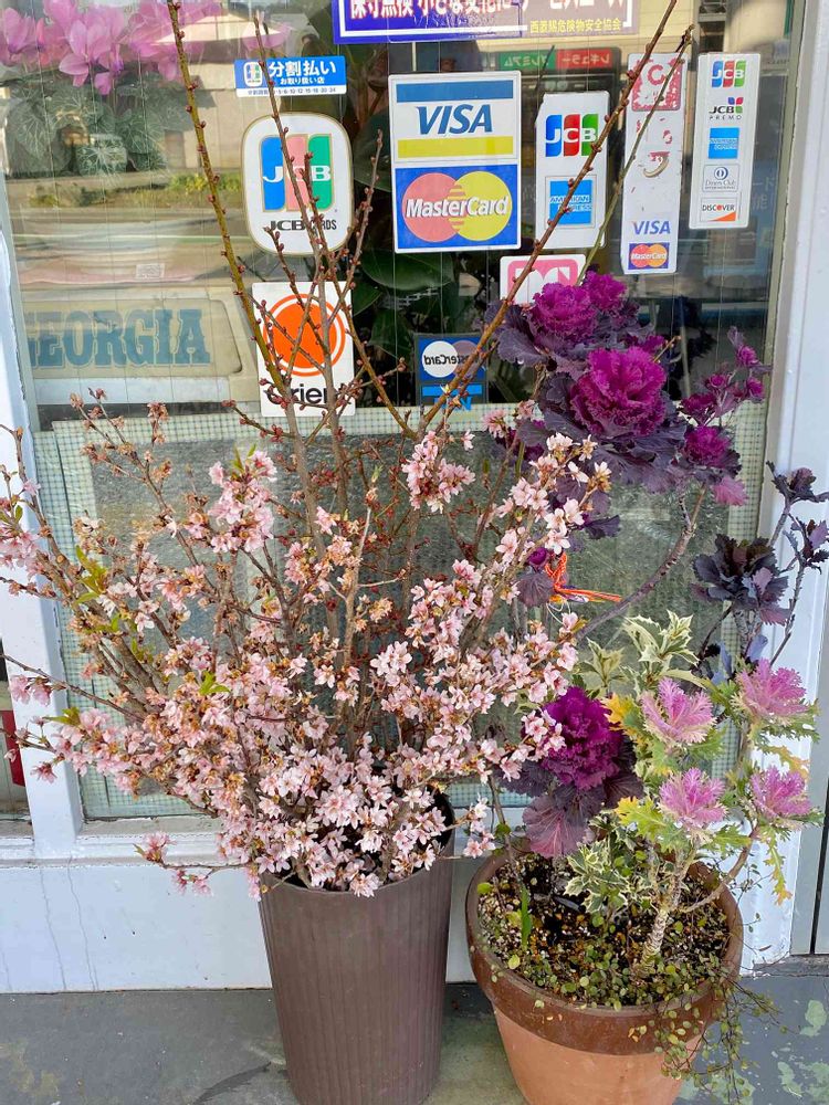 啓翁桜しか入ってなかったハズが……昼食から帰ったら『梅の枝』が増えてた😆
