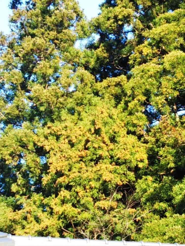 眼が痒くなりそうです。隣にある杉、「国有林」あんまり手入れしてないし、下枝等延び放題です❗️二日前の暴風雨警報で、喜び飛んだ花粉もあったよう、この木はご覧の通りシッカリ飛び忘れました❗️ちょい😅💢迷惑だぞ。花粉症の私、眼はチカチカの目薬、マスクは三日間使い回し状態ですが、リハビリは散歩、自分のためにしないといけません。