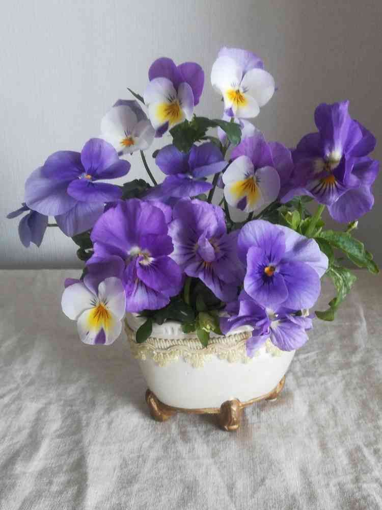 紫色のビオラ、パンジーが好きで一緒に水挿しにしてみました💕