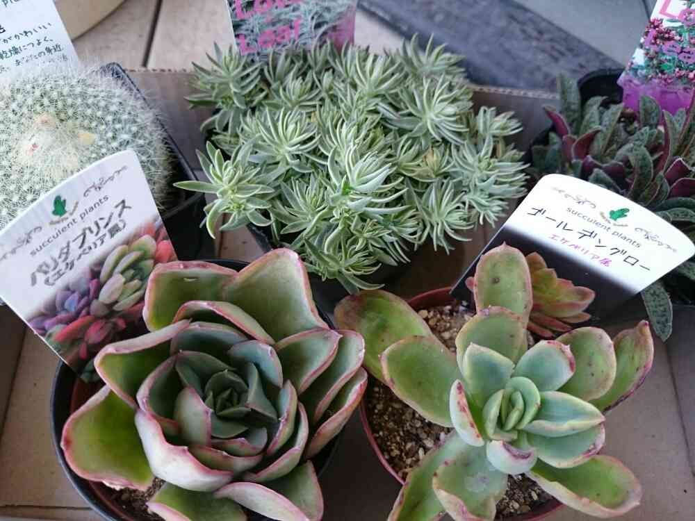 手前2つの見切り品は寄せ植えに良さそう。サボテン雪晃はお花を見たくて買ってみました🌼