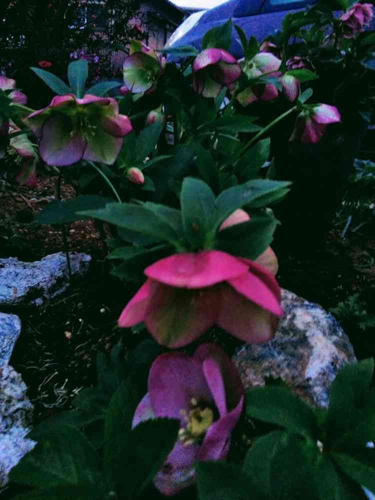 散策の通り道に有るお宅の花壇に咲く、クリスマスローズが綺麗でした。