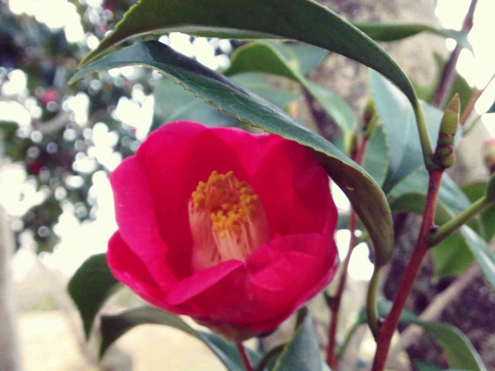 姫路城の外堀で見つけた椿の木、花のアップ②