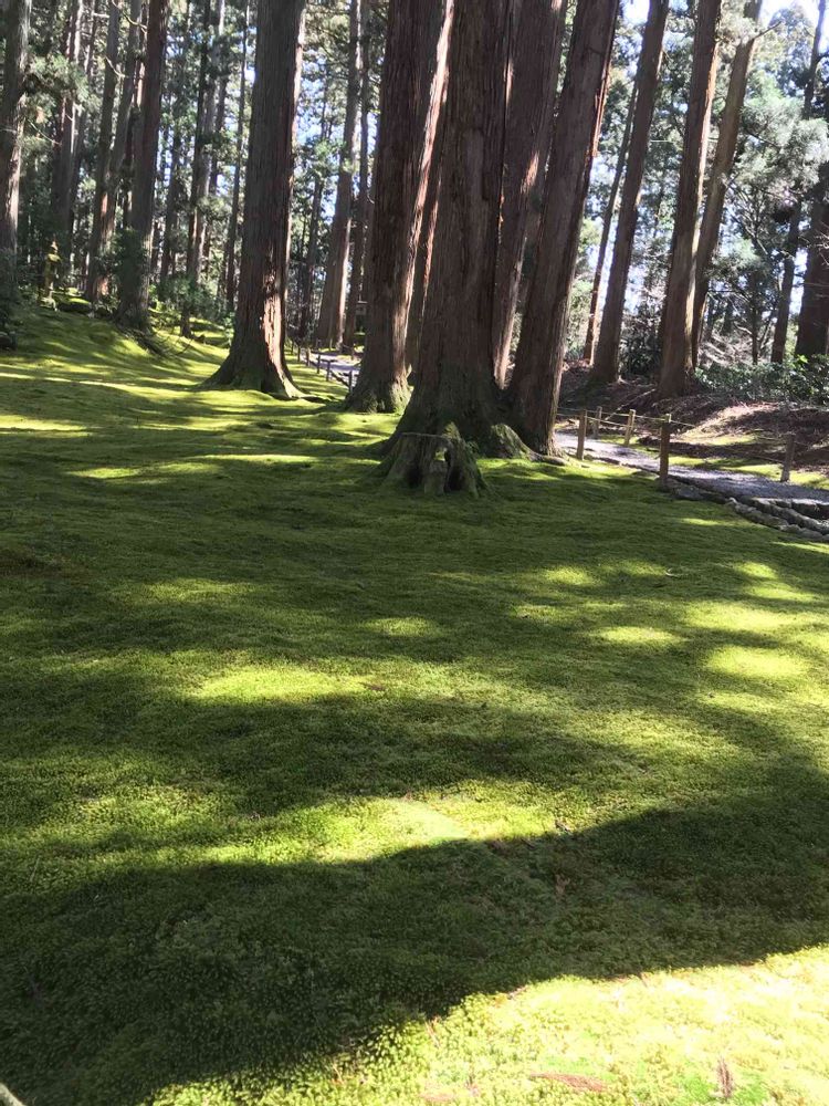 拝殿前の杉林に広がる苔がとても美しくて感動✨