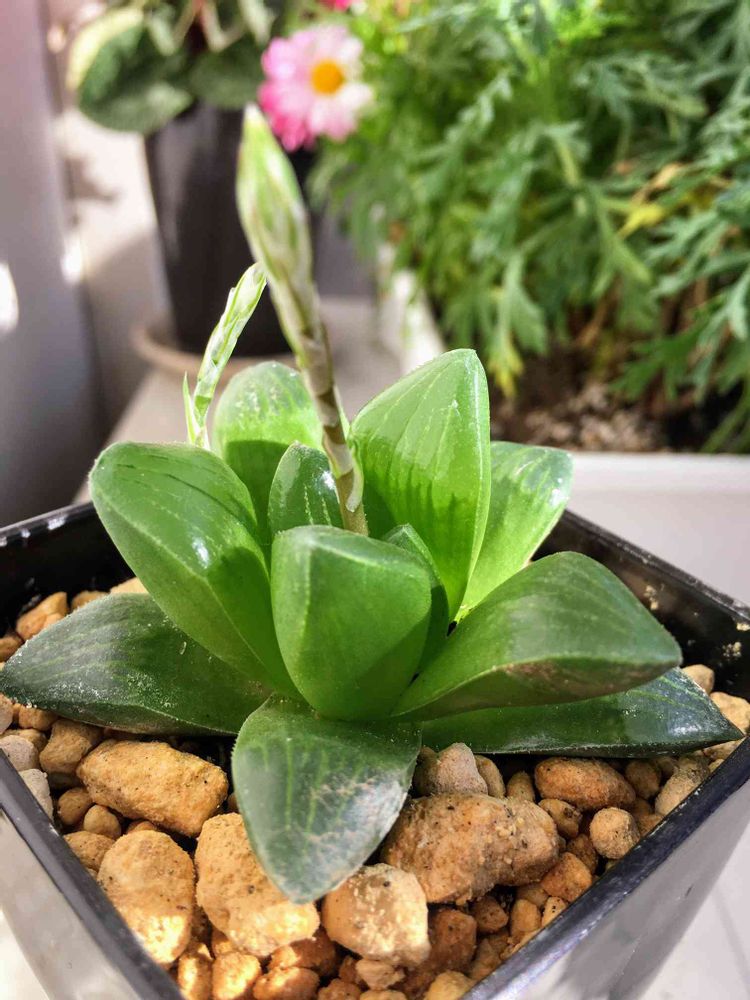 素敵なはおるちあさんと、出会えて良かったですねー!この透明感、惚れ惚れするし、見飽きないですよね❣️おまけに花芽が上がってきてるではありませんか⁉️多分、思いのほか高く高く伸びて行くと思います!そして、地味ですが、花も咲きますよ!お楽しみに❣️