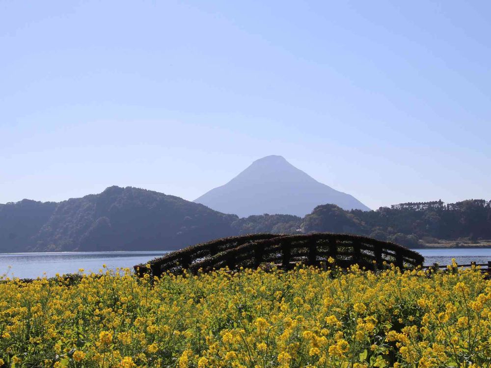 鹿児島県指宿市にある南九州最大の湖、池田湖 湖畔に菜の花畑がありお正月で満開、また1月には菜の花マラソンもあります❗️ 来年また見に行きます!