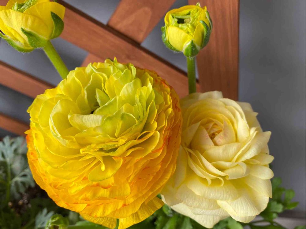 グラデーションのラナンキュラスとうすいきいろのラナンキュラスの組み合わせかわいいですね✨✨