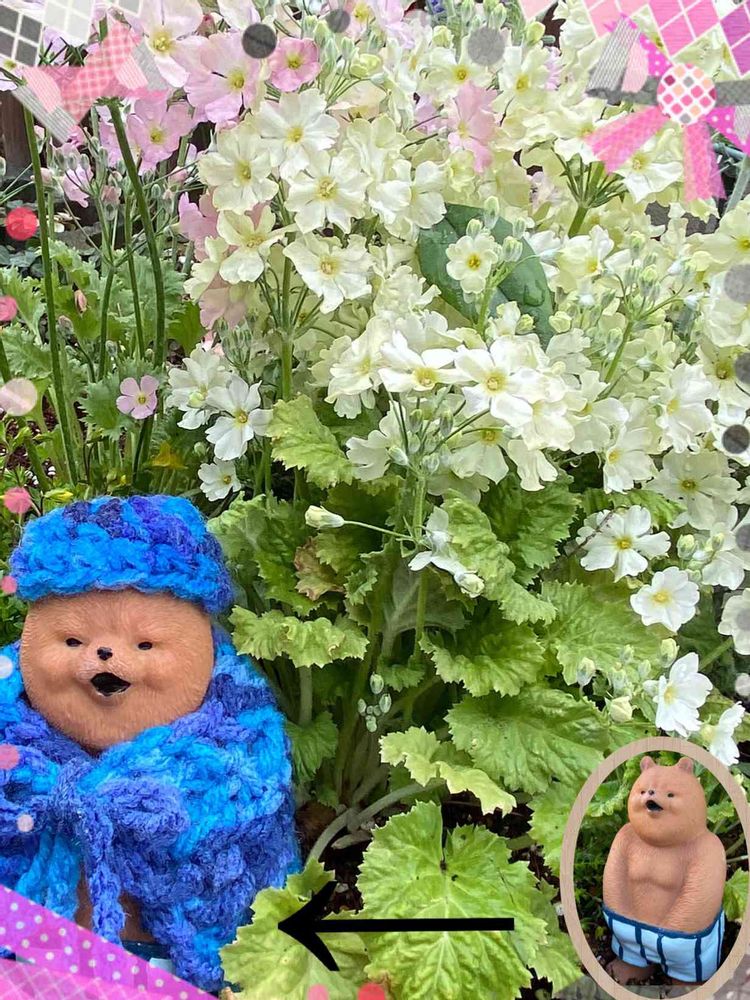 今晩は。笑 くまさん寒いのでパンツに手入れてるのかな?ケープはグッドアイデアですね。笑🤣
